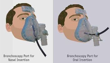 NIV mask with nasal and oral insertion ports for 5mm to 8.2mm catheters, transparent ultra-light weight mask with extra comfort headgear